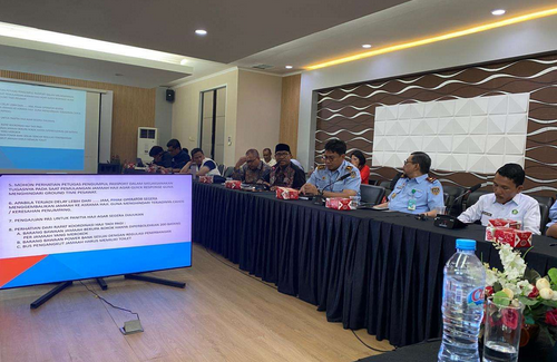PPIHD Malut melaksanakan rapat koordinasi pembahasan dengan pihak embarkasi dan debarkasi di Makassar, Sulawesi Selatan, terkait angkutan haji, musim haji 1446 hijriah atau 2026 masehi ini dilakukan pada Selasa (15/4/2025). (foto Humas)